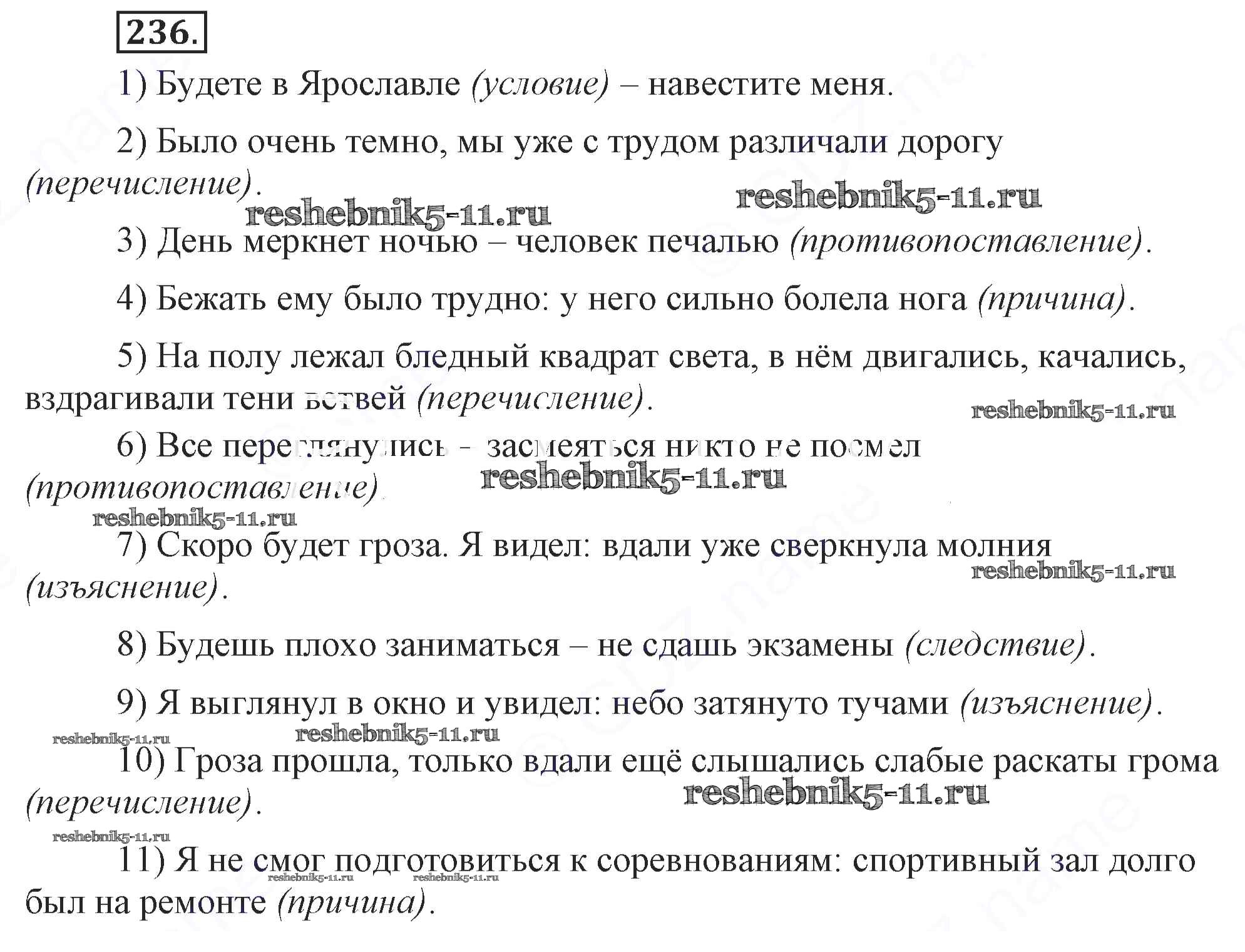Готовая домашняя работа с ответами по Русскому языку за 9 класс Бархударов, Крючков, Максимов, Чешко Учебник Просвещение 2011 ФГОС - Упражнения 236