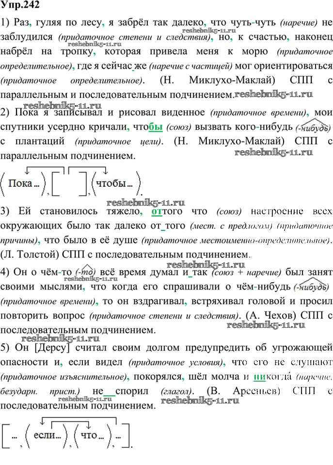 Готовая домашняя работа с ответами по Русскому языку за 9 класс Бархударов, Крючков, Максимов, Чешко Учебник Просвещение 2011 ФГОС - Упражнения 242