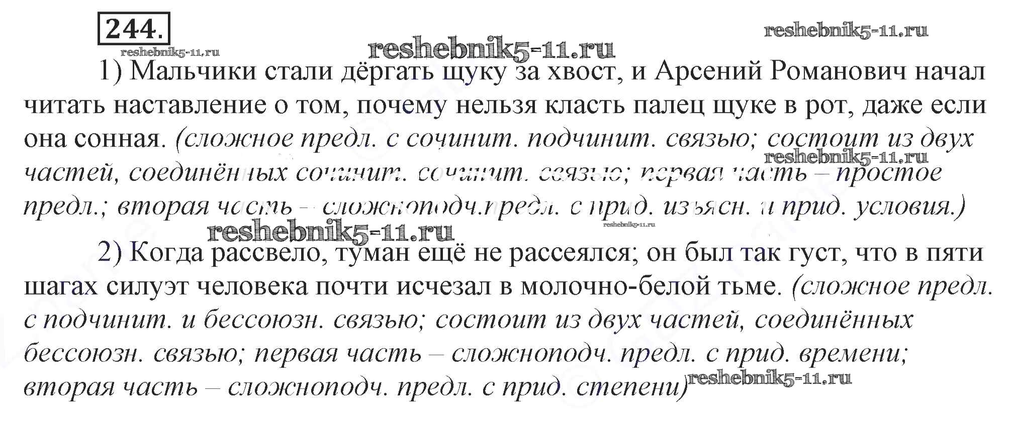 Готовая домашняя работа с ответами по Русскому языку за 9 класс Бархударов, Крючков, Максимов, Чешко Учебник Просвещение 2011 ФГОС - Упражнения 244
