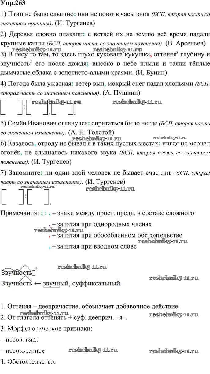 Готовая домашняя работа с ответами по Русскому языку за 9 класс Бархударов, Крючков, Максимов, Чешко Учебник Просвещение 2011 ФГОС - Упражнения 263