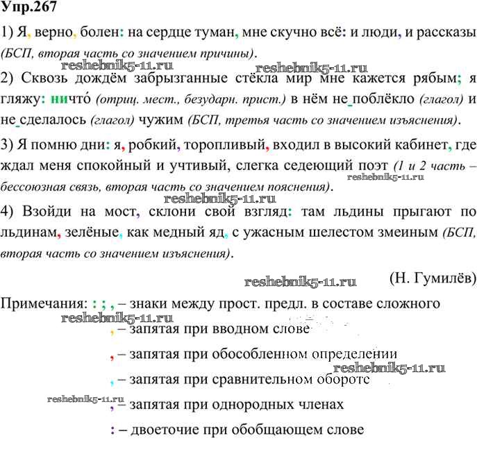 Готовая домашняя работа с ответами по Русскому языку за 9 класс Бархударов, Крючков, Максимов, Чешко Учебник Просвещение 2011 ФГОС - Упражнения 267