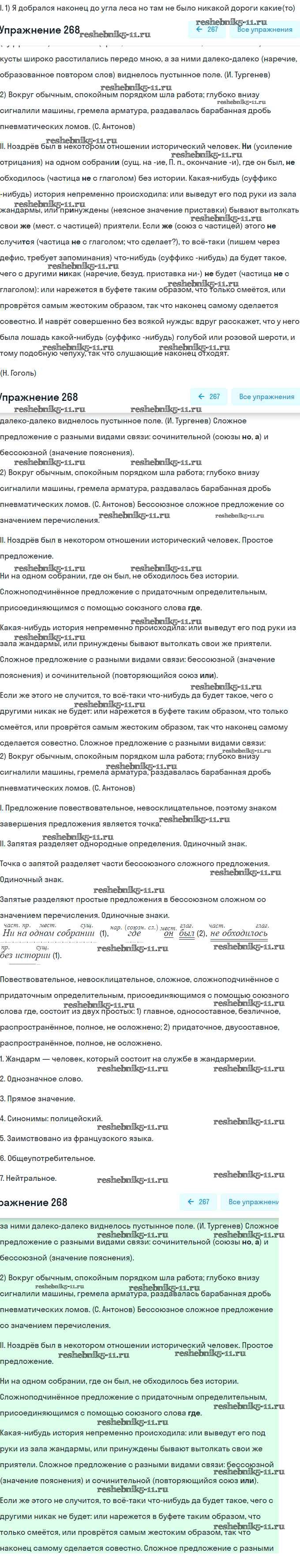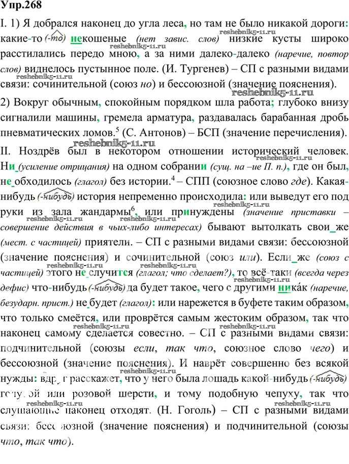 Готовая домашняя работа с ответами по Русскому языку за 9 класс Бархударов, Крючков, Максимов, Чешко Учебник Просвещение 2011 ФГОС - Упражнения 268