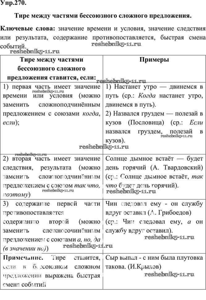 Готовая домашняя работа с ответами по Русскому языку за 9 класс Бархударов, Крючков, Максимов, Чешко Учебник Просвещение 2011 ФГОС - Упражнения 270