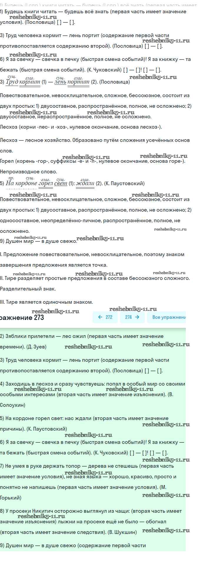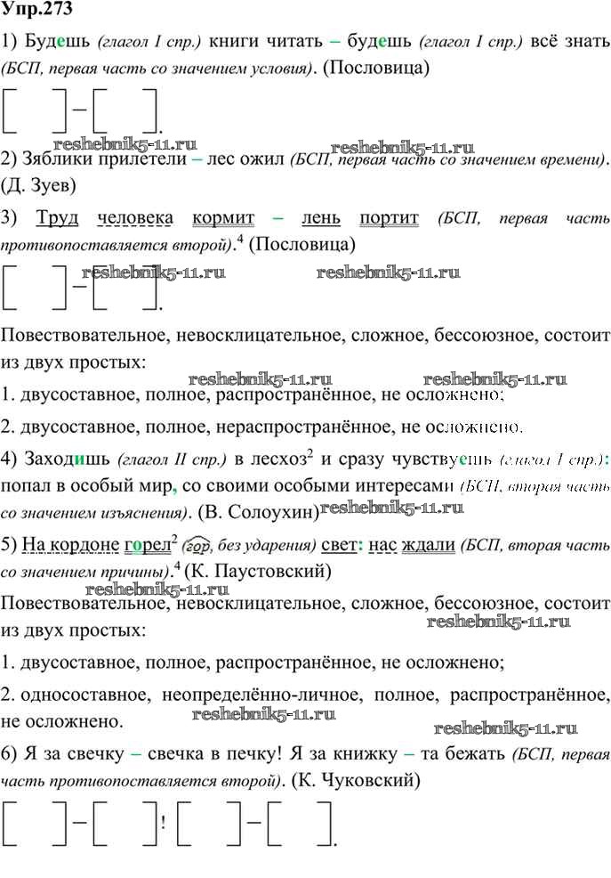 Готовая домашняя работа с ответами по Русскому языку за 9 класс Бархударов, Крючков, Максимов, Чешко Учебник Просвещение 2011 ФГОС - Упражнения 273
