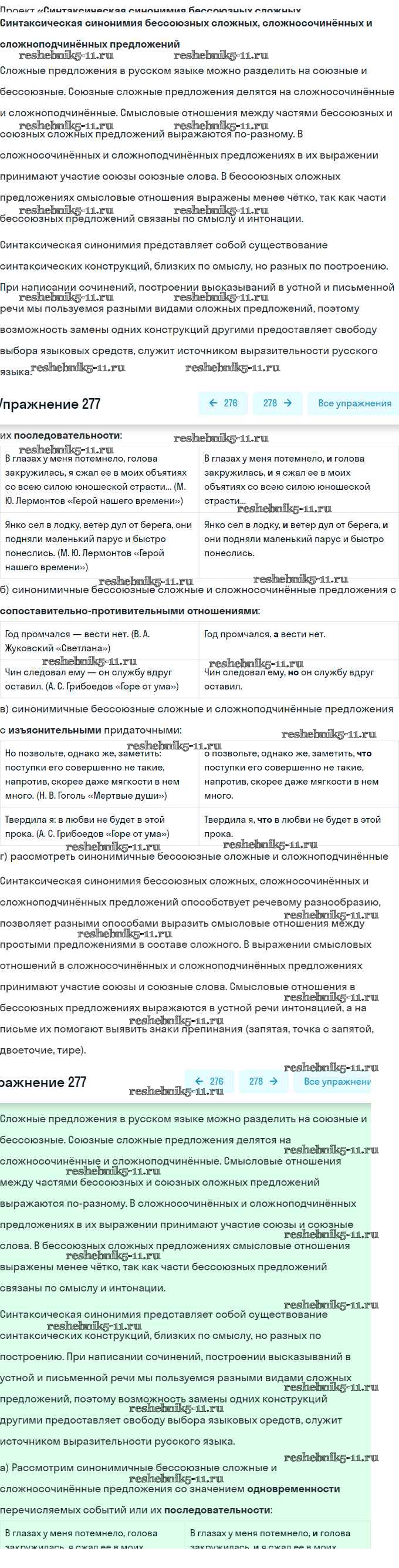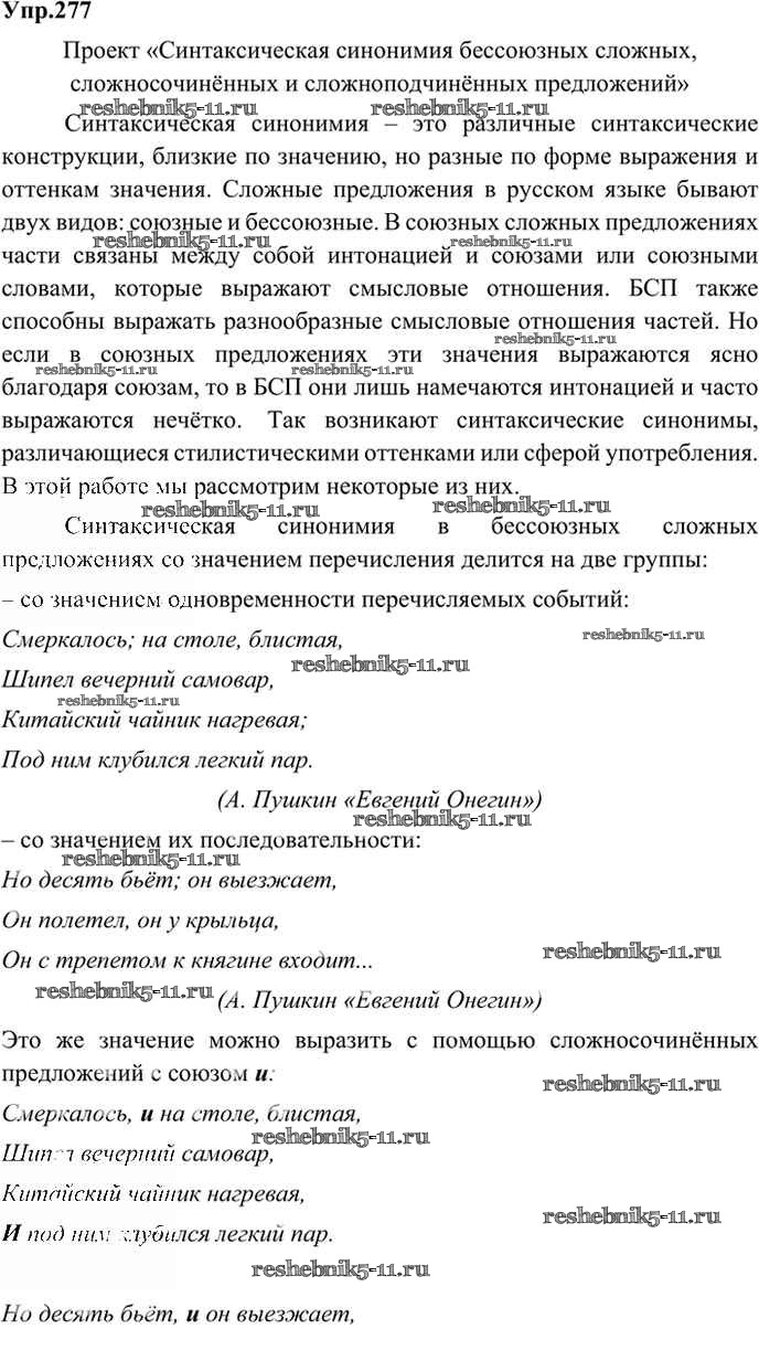 Готовая домашняя работа с ответами по Русскому языку за 9 класс Бархударов, Крючков, Максимов, Чешко Учебник Просвещение 2011 ФГОС - Упражнения 277