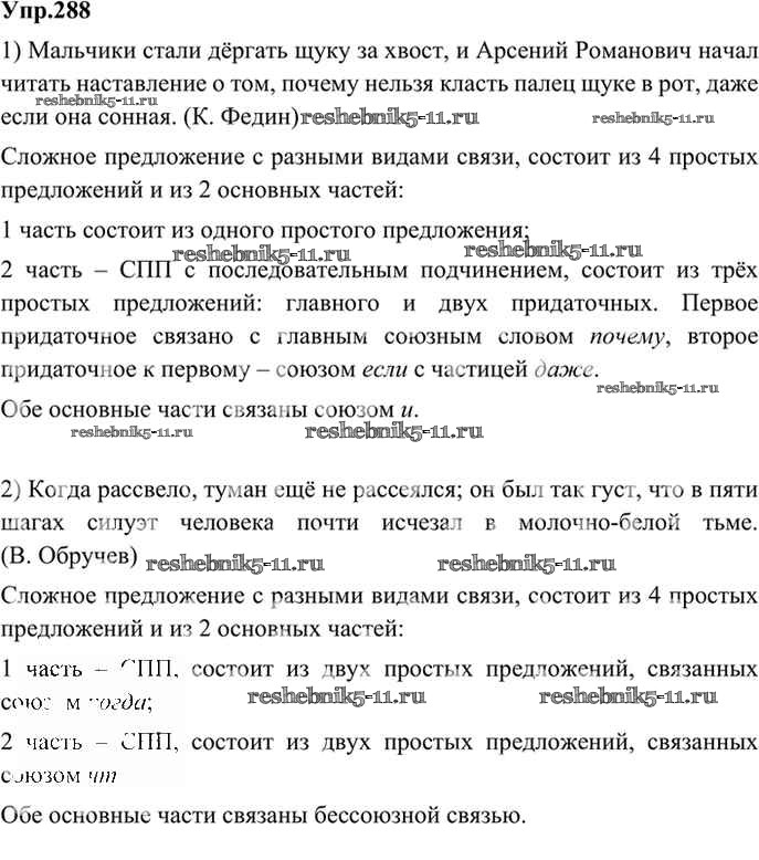 Готовая домашняя работа с ответами по Русскому языку за 9 класс Бархударов, Крючков, Максимов, Чешко Учебник Просвещение 2011 ФГОС - Упражнения 288