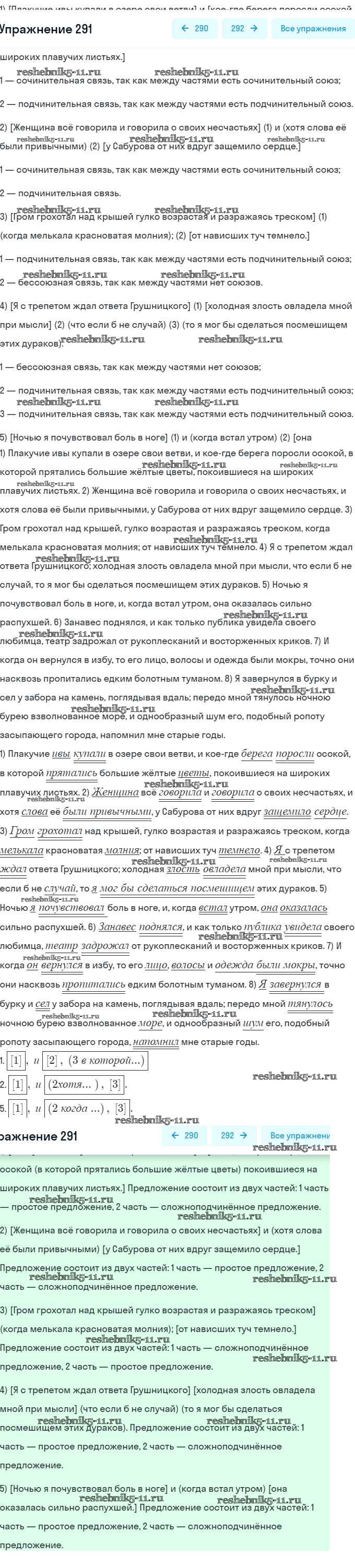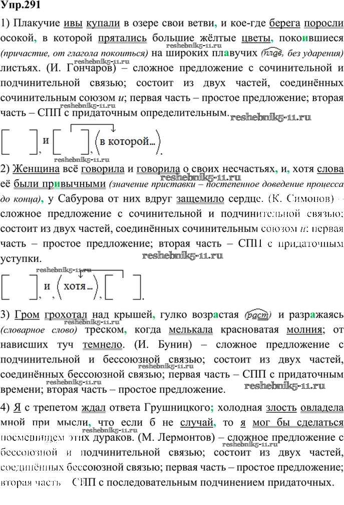Готовая домашняя работа с ответами по Русскому языку за 9 класс Бархударов, Крючков, Максимов, Чешко Учебник Просвещение 2011 ФГОС - Упражнения 291
