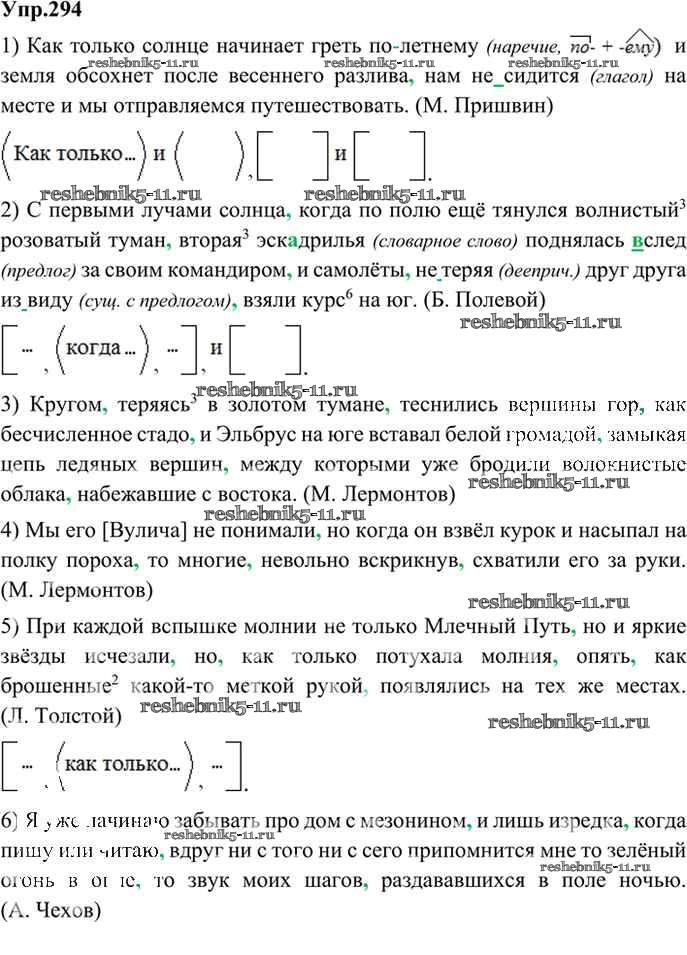 Готовая домашняя работа с ответами по Русскому языку за 9 класс Бархударов, Крючков, Максимов, Чешко Учебник Просвещение 2011 ФГОС - Упражнения 294