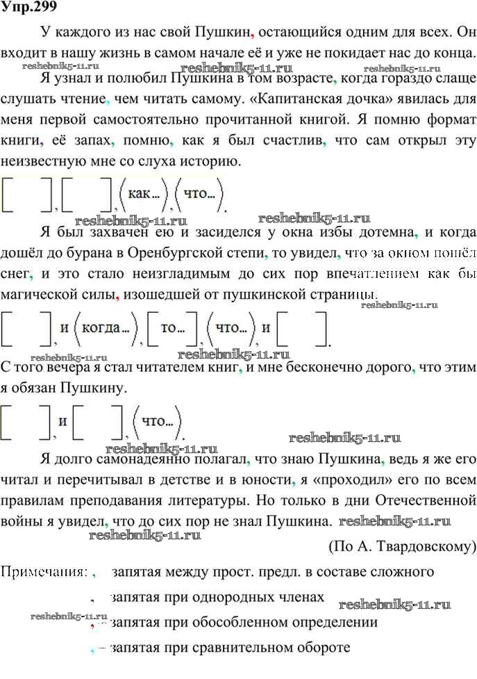 Готовая домашняя работа с ответами по Русскому языку за 9 класс Бархударов, Крючков, Максимов, Чешко Учебник Просвещение 2011 ФГОС - Упражнения 299
