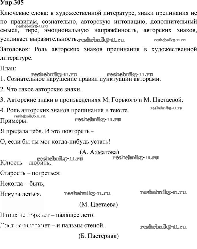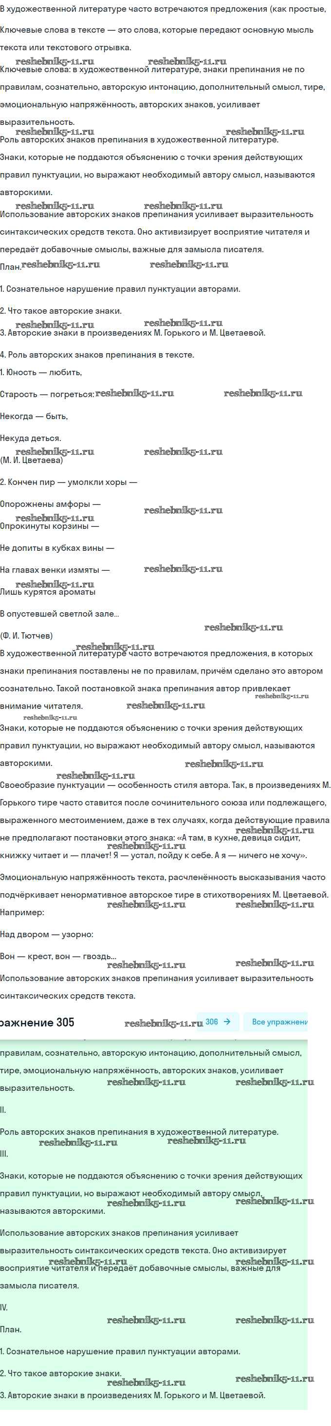 Готовая домашняя работа с ответами по Русскому языку за 9 класс Бархударов, Крючков, Максимов, Чешко Учебник Просвещение 2011 ФГОС - Упражнения 305