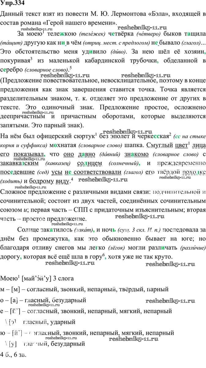 Готовая домашняя работа с ответами по Русскому языку за 9 класс Бархударов, Крючков, Максимов, Чешко Учебник Просвещение 2011 ФГОС - Упражнения 334