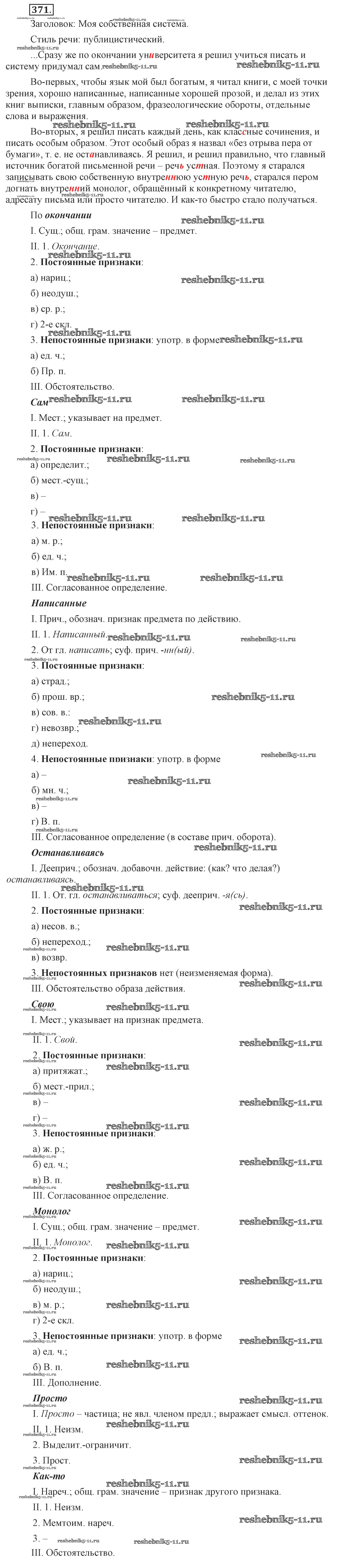 Готовая домашняя работа с ответами по Русскому языку за 9 класс Бархударов, Крючков, Максимов, Чешко Учебник Просвещение 2011 ФГОС - Упражнения 371