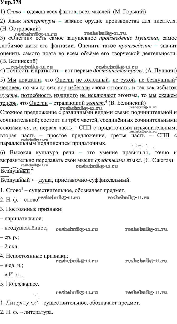 Готовая домашняя работа с ответами по Русскому языку за 9 класс Бархударов, Крючков, Максимов, Чешко Учебник Просвещение 2011 ФГОС - Упражнения 378