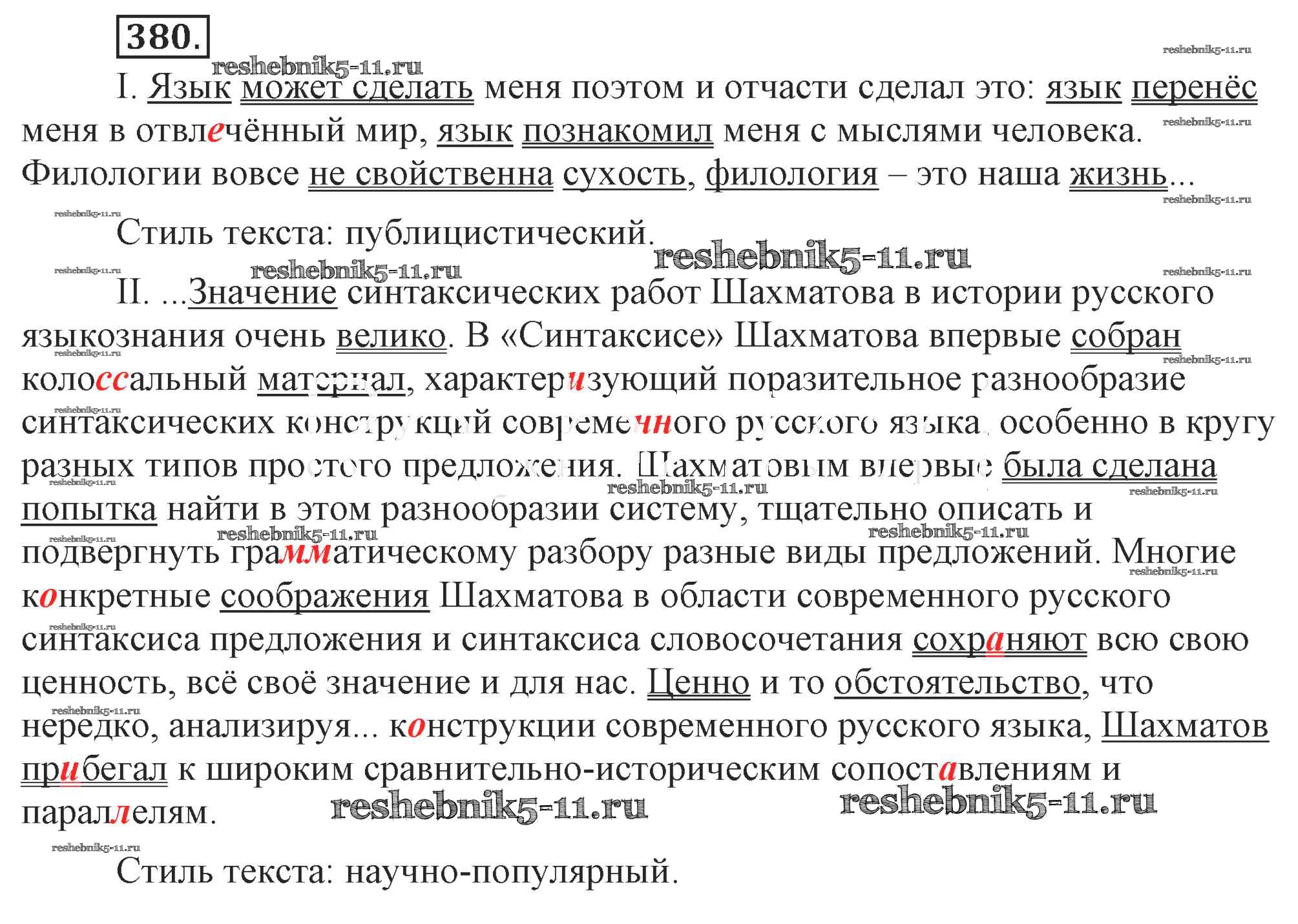 Готовая домашняя работа с ответами по Русскому языку за 9 класс Бархударов, Крючков, Максимов, Чешко Учебник Просвещение 2011 ФГОС - Упражнения 380