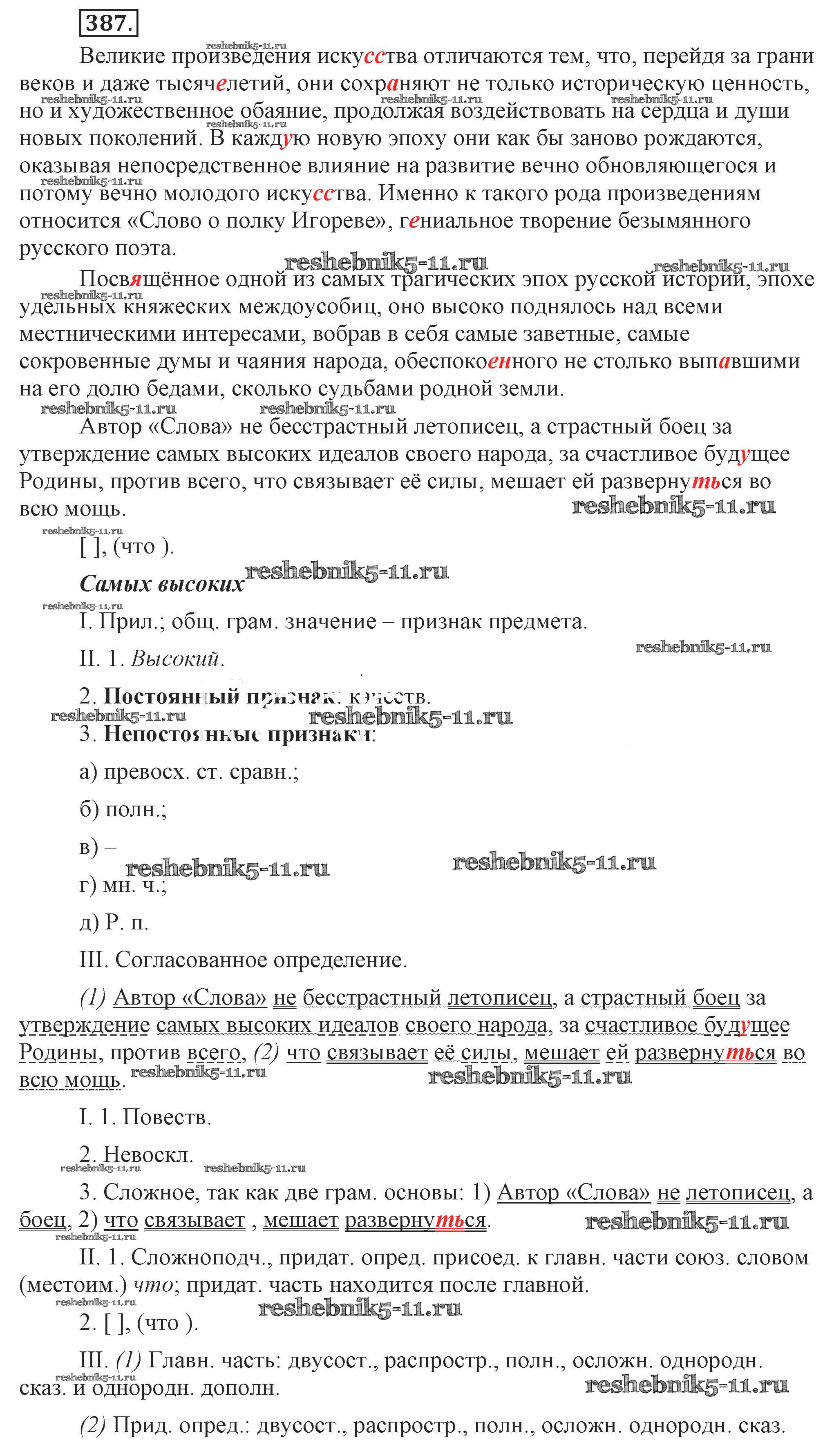 Готовая домашняя работа с ответами по Русскому языку за 9 класс Бархударов, Крючков, Максимов, Чешко Учебник Просвещение 2011 ФГОС - Упражнения 387