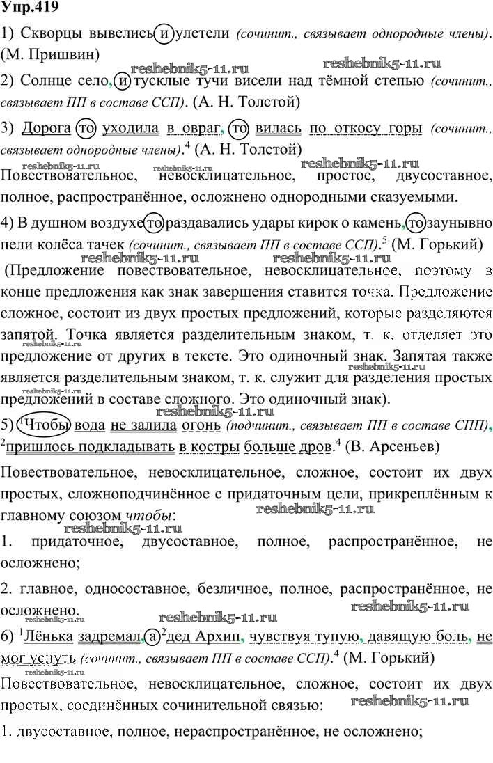 Готовая домашняя работа с ответами по Русскому языку за 9 класс Бархударов, Крючков, Максимов, Чешко Учебник Просвещение 2011 ФГОС - Упражнения 419