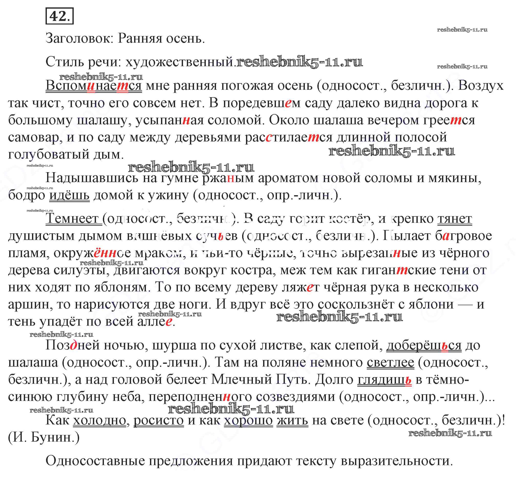 Готовая домашняя работа с ответами по Русскому языку за 9 класс Бархударов, Крючков, Максимов, Чешко Учебник Просвещение 2011 ФГОС - Упражнения 42