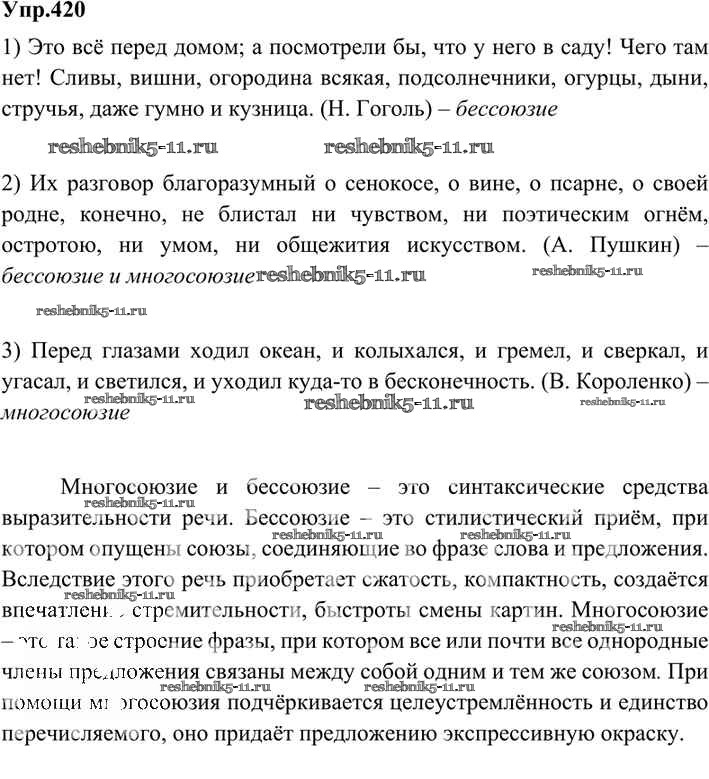 Готовая домашняя работа с ответами по Русскому языку за 9 класс Бархударов, Крючков, Максимов, Чешко Учебник Просвещение 2011 ФГОС - Упражнения 420