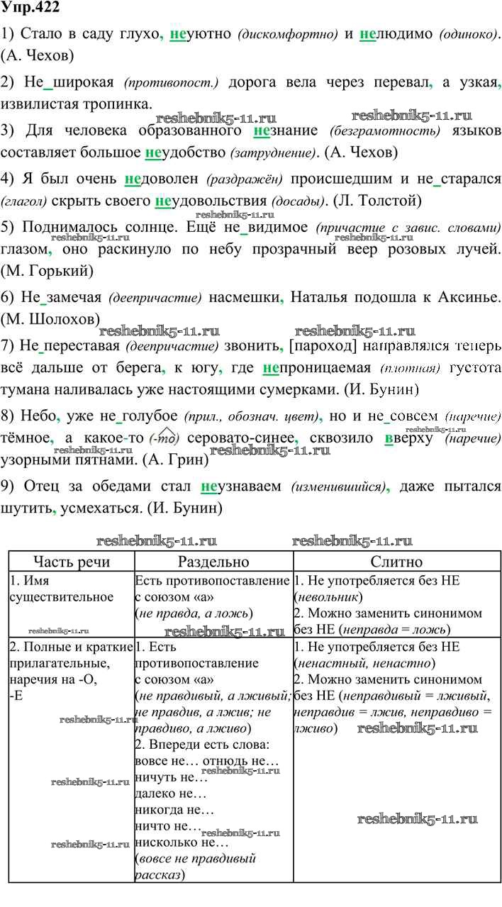 Готовая домашняя работа с ответами по Русскому языку за 9 класс Бархударов, Крючков, Максимов, Чешко Учебник Просвещение 2011 ФГОС - Упражнения 422