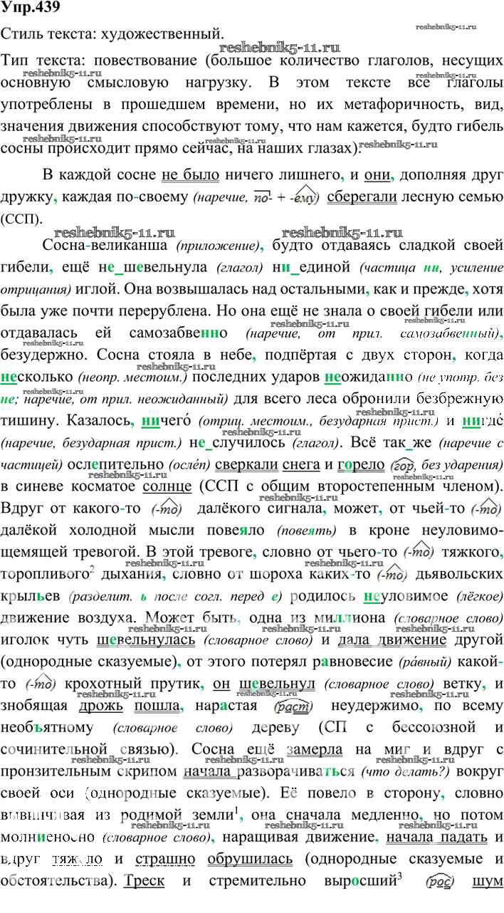 Готовая домашняя работа с ответами по Русскому языку за 9 класс Бархударов, Крючков, Максимов, Чешко Учебник Просвещение 2011 ФГОС - Упражнения 439