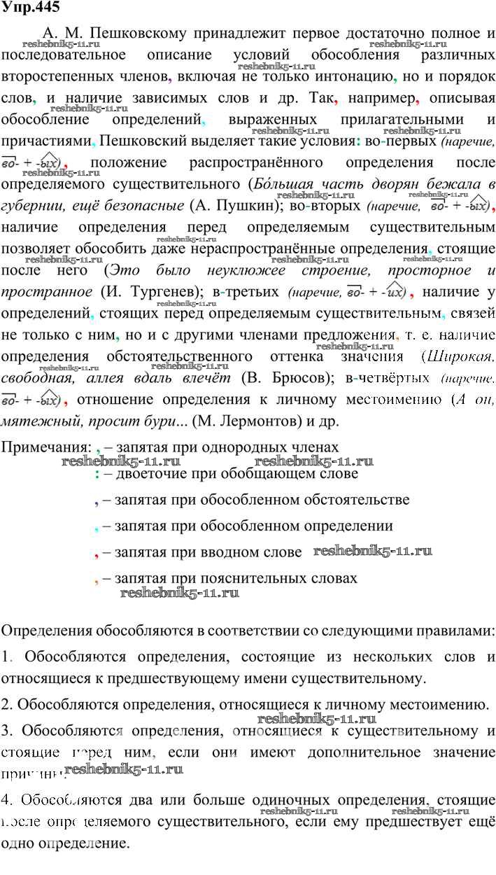 Готовая домашняя работа с ответами по Русскому языку за 9 класс Бархударов, Крючков, Максимов, Чешко Учебник Просвещение 2011 ФГОС - Упражнения 445