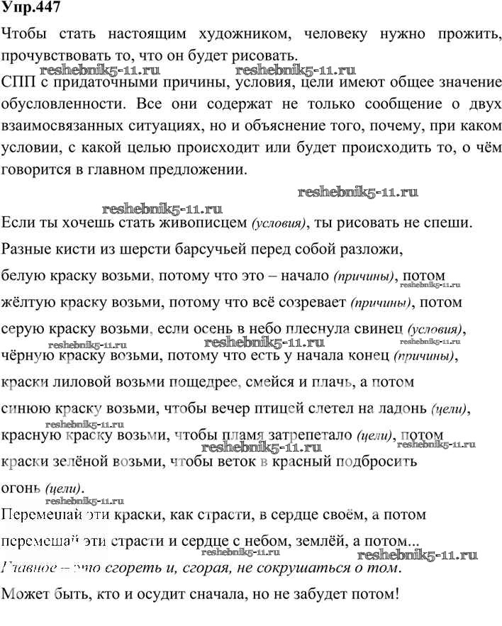 Готовая домашняя работа с ответами по Русскому языку за 9 класс Бархударов, Крючков, Максимов, Чешко Учебник Просвещение 2011 ФГОС - Упражнения 447