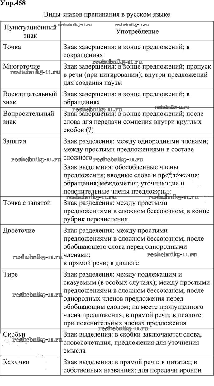 Готовая домашняя работа с ответами по Русскому языку за 9 класс Бархударов, Крючков, Максимов, Чешко Учебник Просвещение 2011 ФГОС - Упражнения 458