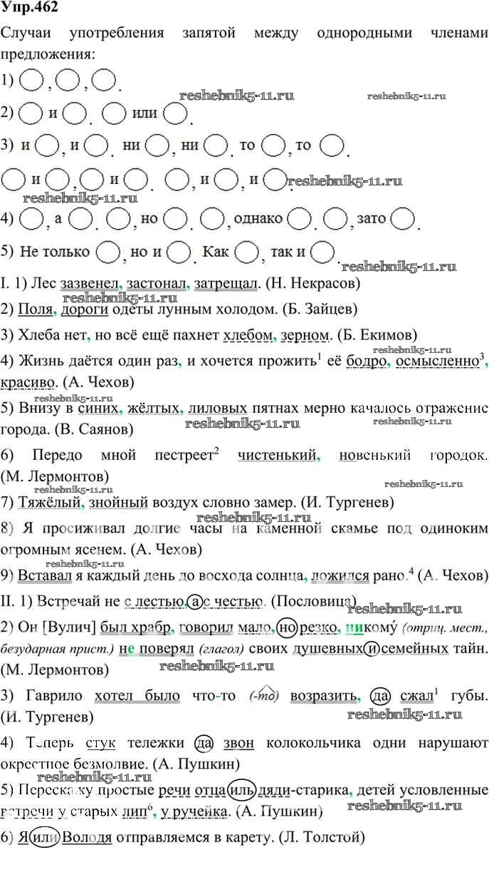 Готовая домашняя работа с ответами по Русскому языку за 9 класс Бархударов, Крючков, Максимов, Чешко Учебник Просвещение 2011 ФГОС - Упражнения 462
