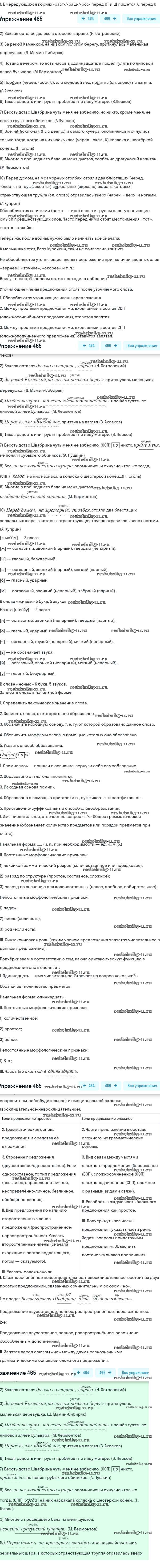 Готовая домашняя работа с ответами по Русскому языку за 9 класс Бархударов, Крючков, Максимов, Чешко Учебник Просвещение 2011 ФГОС - Упражнения 465