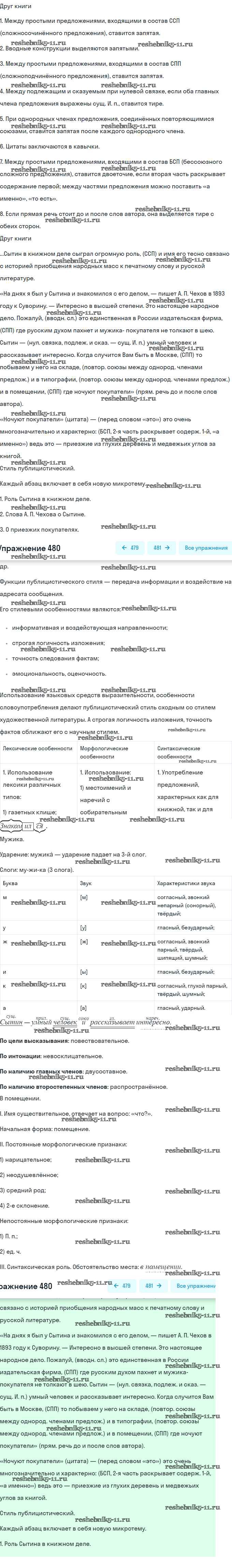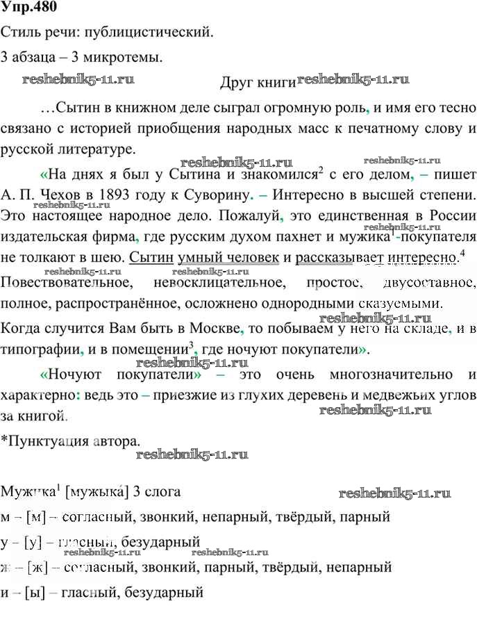 Готовая домашняя работа с ответами по Русскому языку за 9 класс Бархударов, Крючков, Максимов, Чешко Учебник Просвещение 2011 ФГОС - Упражнения 480