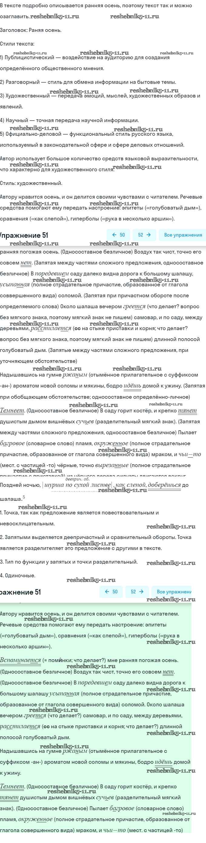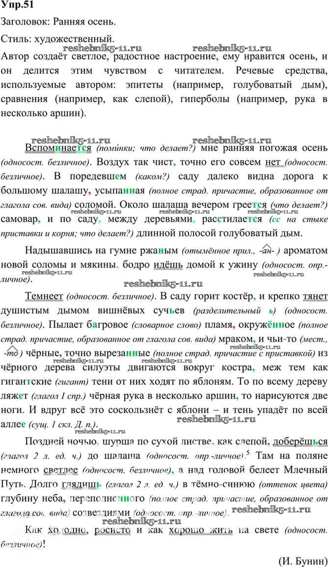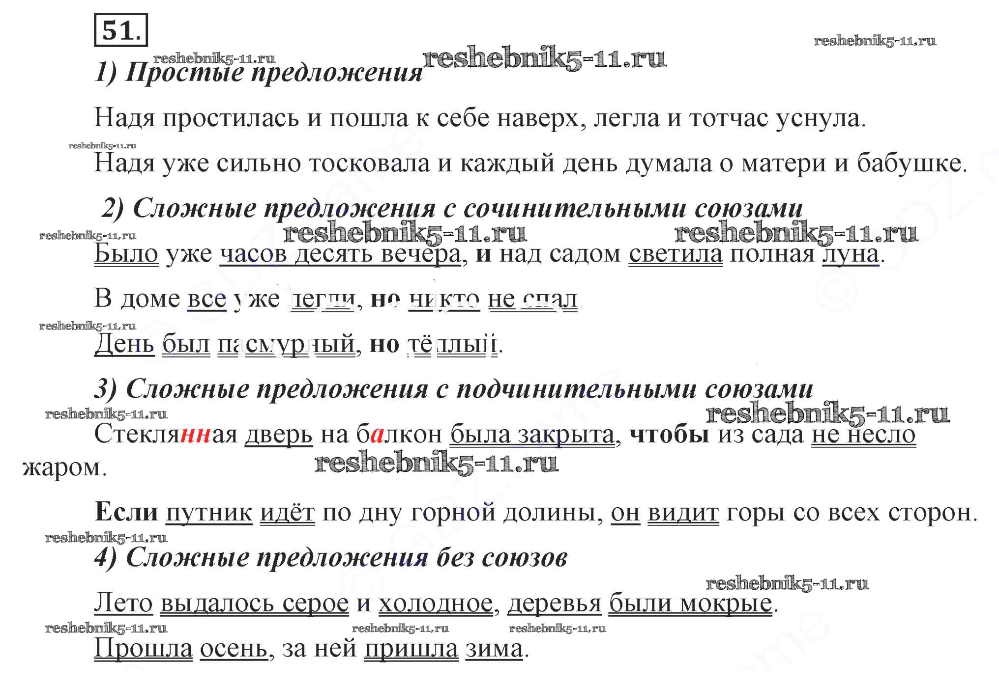 Готовая домашняя работа с ответами по Русскому языку за 9 класс Бархударов, Крючков, Максимов, Чешко Учебник Просвещение 2011 ФГОС - Упражнения 51