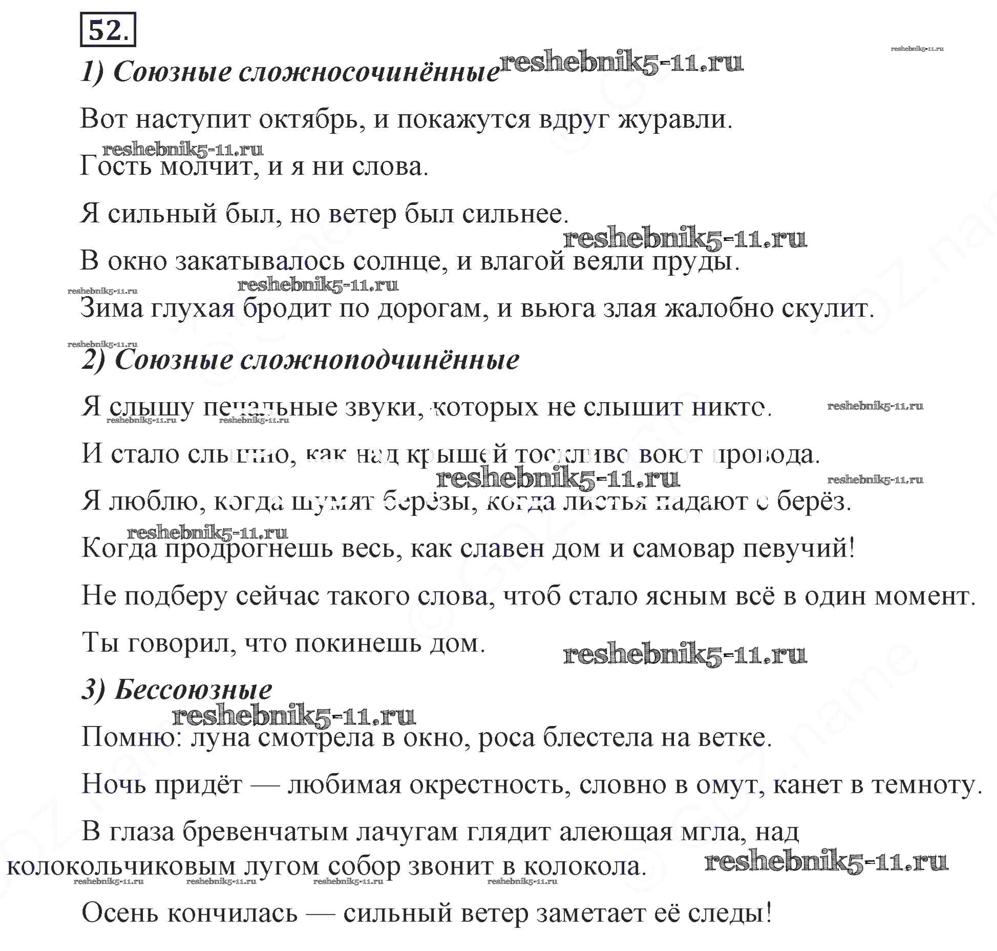 Готовая домашняя работа с ответами по Русскому языку за 9 класс Бархударов, Крючков, Максимов, Чешко Учебник Просвещение 2011 ФГОС - Упражнения 52