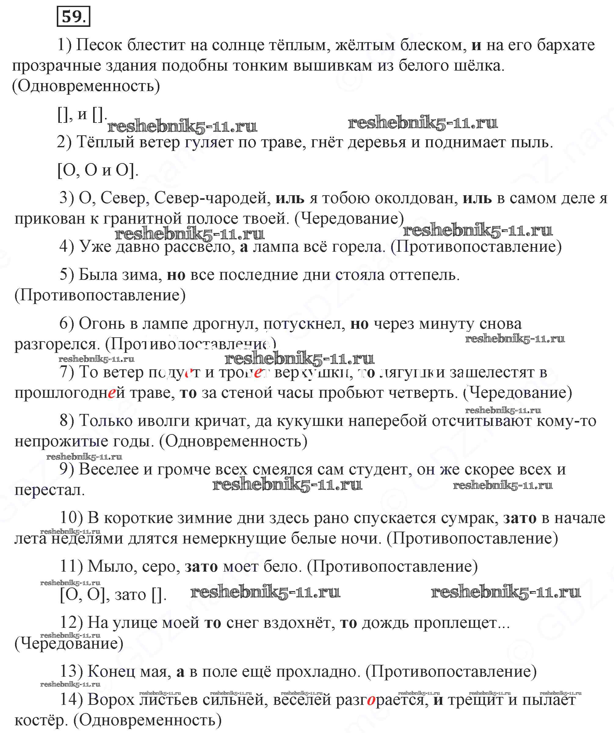 Готовая домашняя работа с ответами по Русскому языку за 9 класс Бархударов, Крючков, Максимов, Чешко Учебник Просвещение 2011 ФГОС - Упражнения 59