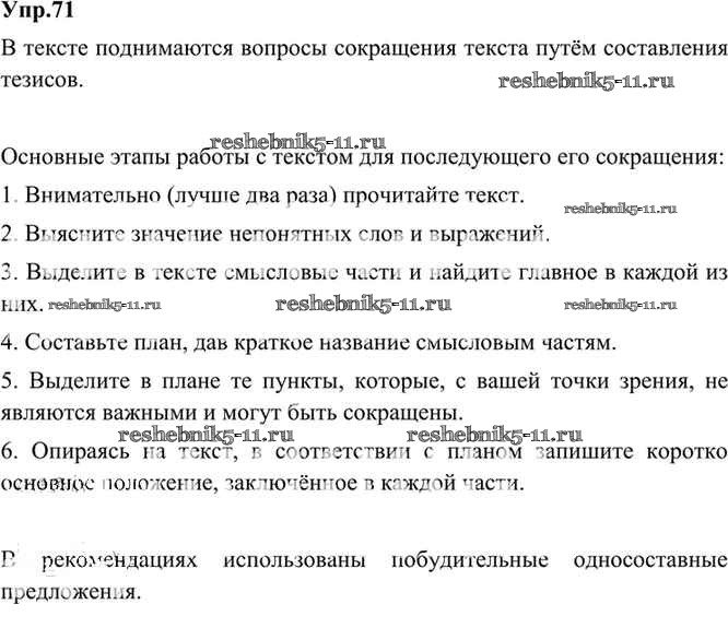 Готовая домашняя работа с ответами по Русскому языку за 9 класс Бархударов, Крючков, Максимов, Чешко Учебник Просвещение 2011 ФГОС - Упражнения 71