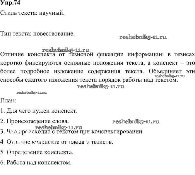 Готовая домашняя работа с ответами по Русскому языку за 9 класс Бархударов, Крючков, Максимов, Чешко Учебник Просвещение 2011 ФГОС - Упражнения 74