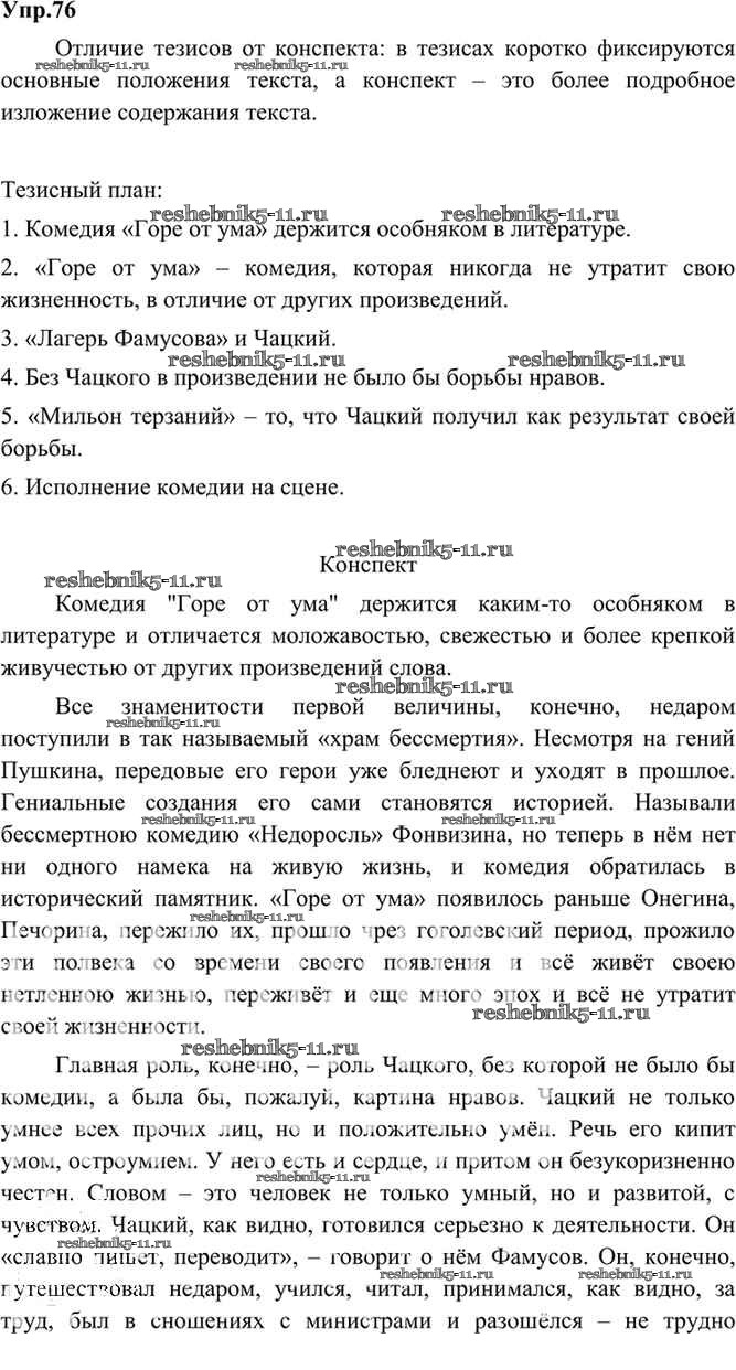 Готовая домашняя работа с ответами по Русскому языку за 9 класс Бархударов, Крючков, Максимов, Чешко Учебник Просвещение 2011 ФГОС - Упражнения 76