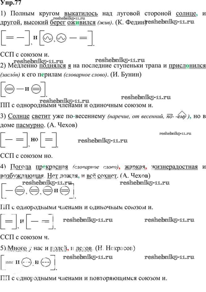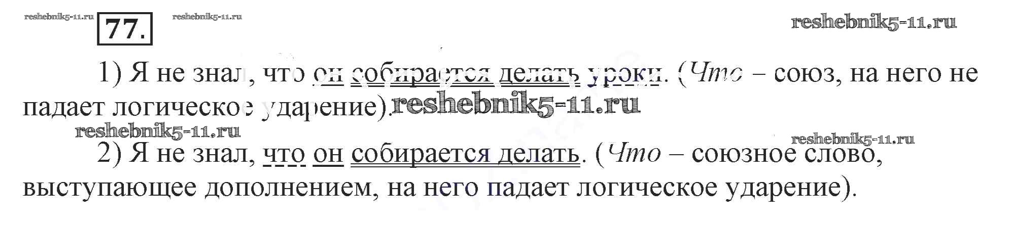 Готовая домашняя работа с ответами по Русскому языку за 9 класс Бархударов, Крючков, Максимов, Чешко Учебник Просвещение 2011 ФГОС - Упражнения 77