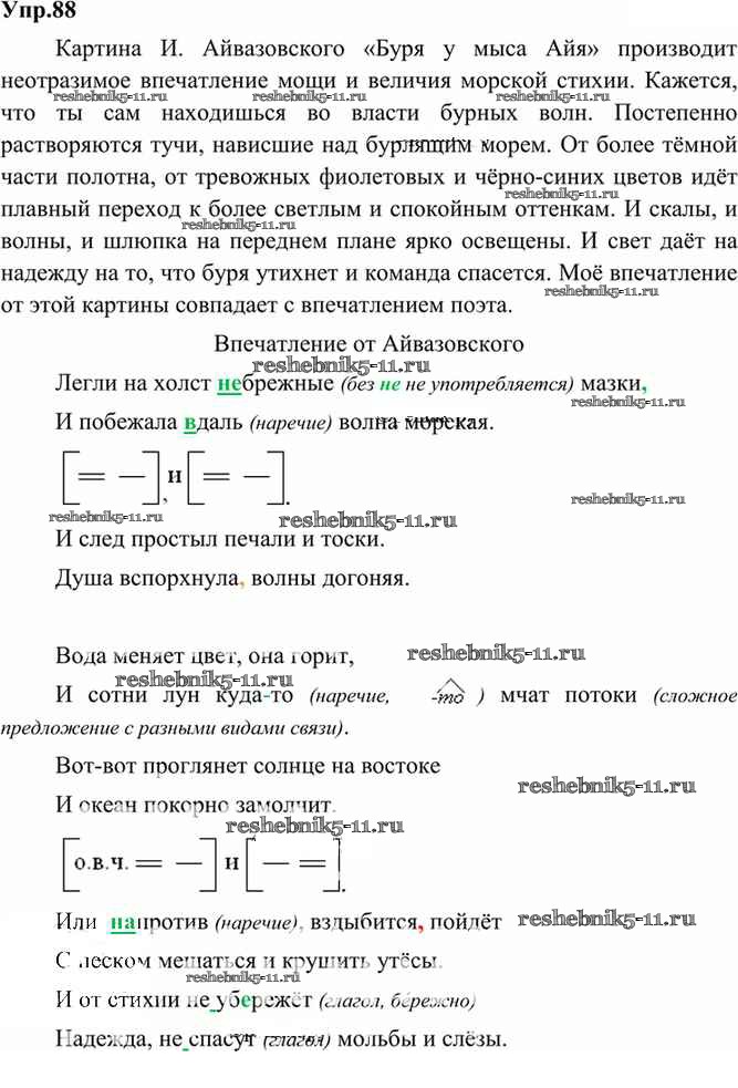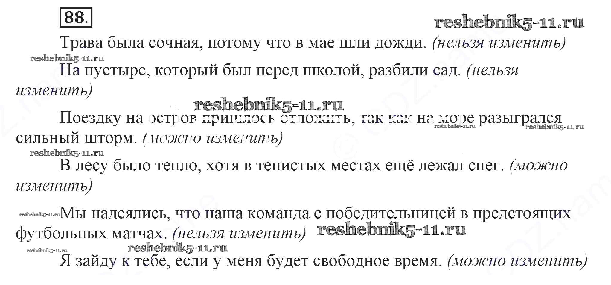 Готовая домашняя работа с ответами по Русскому языку за 9 класс Бархударов, Крючков, Максимов, Чешко Учебник Просвещение 2011 ФГОС - Упражнения 88