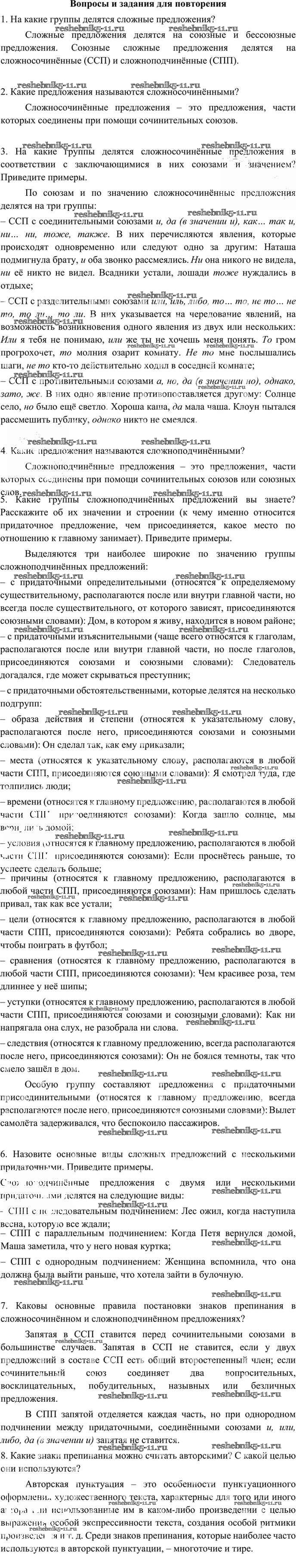 Русский язык за 9 класс Бархударов Учебник Просвещение вопросы и задания для повторения стр.121