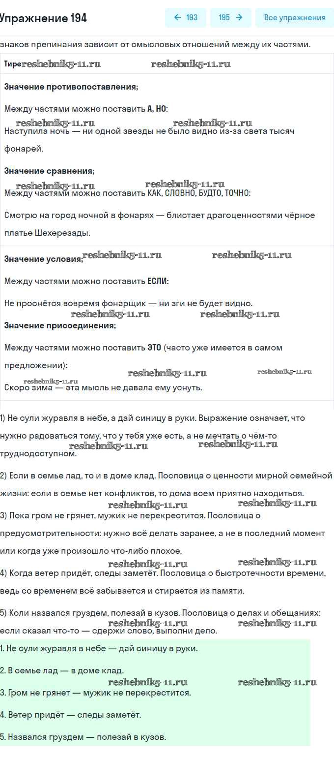 Готовая домашняя работа с ответами по Русскому языку за 9 класс Рыбченкова, Александрова, Загоровская, Нарущевич Учебник УМК Просвещение 2018 ФГОС - Упражнения 194