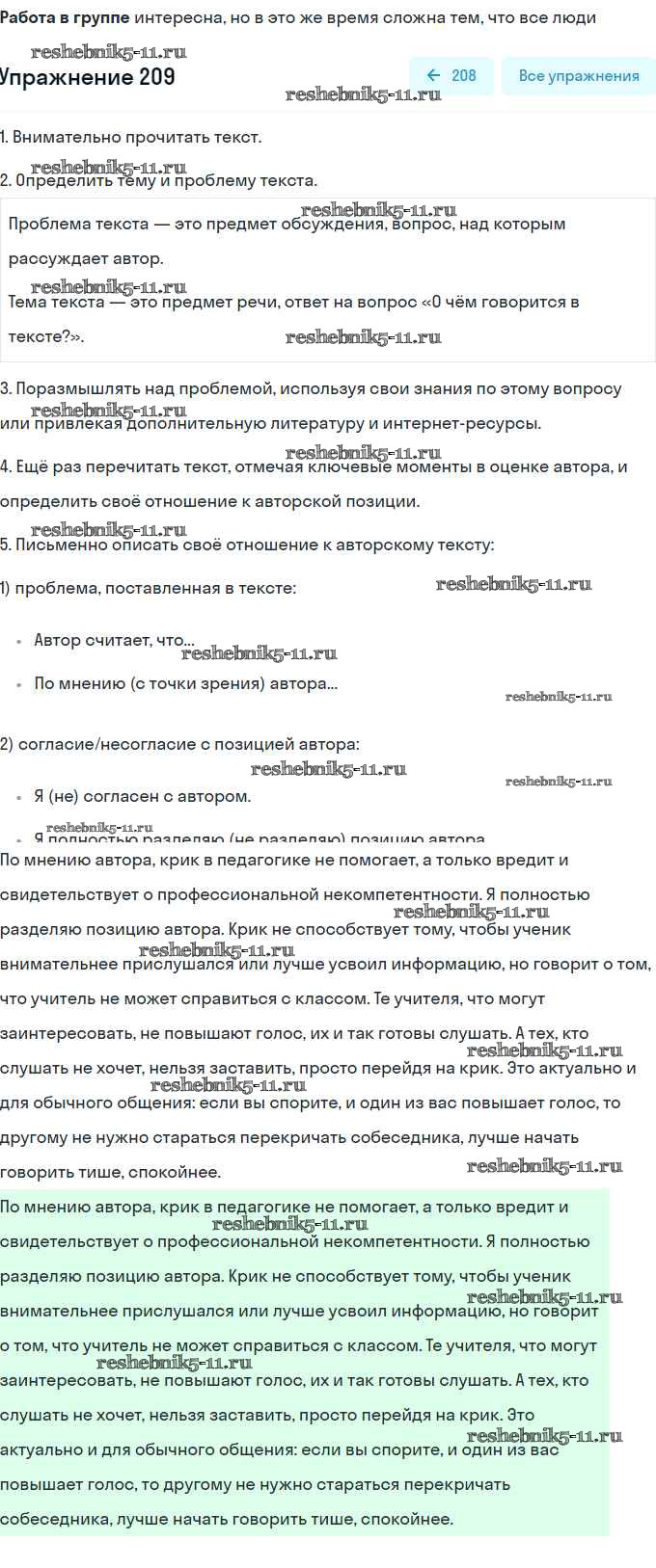 Готовая домашняя работа с ответами по Русскому языку за 9 класс Рыбченкова, Александрова, Загоровская, Нарущевич Учебник УМК Просвещение 2018 ФГОС - Упражнения 209