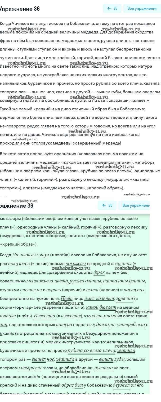 Готовая домашняя работа с ответами по Русскому языку за 9 класс Рыбченкова, Александрова, Загоровская, Нарущевич Учебник УМК Просвещение 2018 ФГОС - Упражнения 36