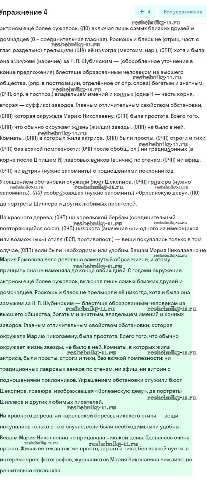 Готовая домашняя работа с ответами по Русскому языку за 9 класс Рыбченкова, Александрова, Загоровская, Нарущевич Учебник УМК Просвещение 2018 ФГОС - Упражнения 4