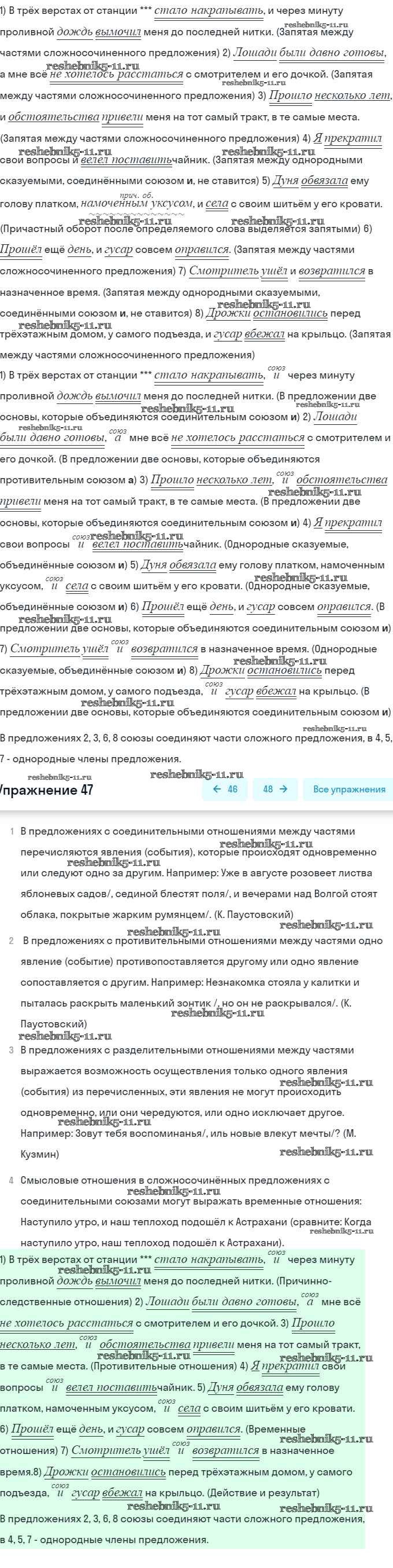 Готовая домашняя работа с ответами по Русскому языку за 9 класс Рыбченкова, Александрова, Загоровская, Нарущевич Учебник УМК Просвещение 2018 ФГОС - Упражнения 47