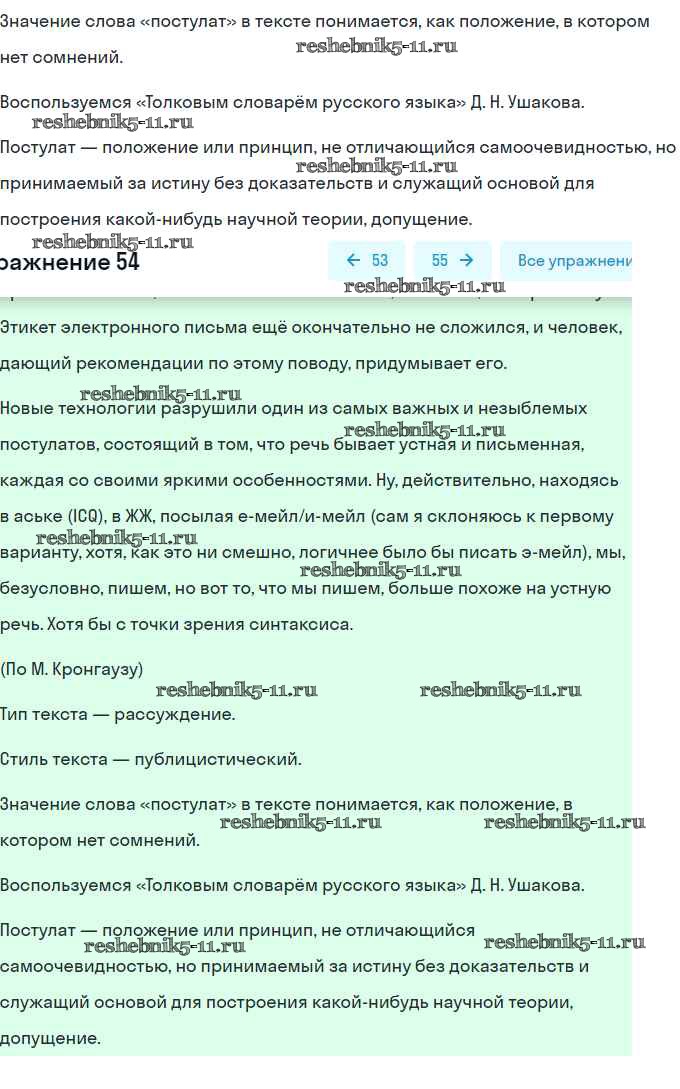 Готовая домашняя работа с ответами по Русскому языку за 9 класс Рыбченкова, Александрова, Загоровская, Нарущевич Учебник УМК Просвещение 2018 ФГОС - Упражнения 54