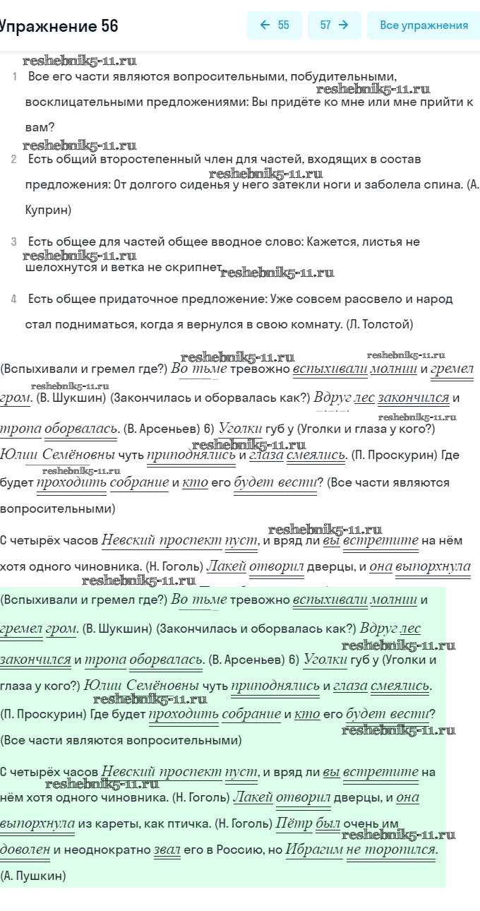 Готовая домашняя работа с ответами по Русскому языку за 9 класс Рыбченкова, Александрова, Загоровская, Нарущевич Учебник УМК Просвещение 2018 ФГОС - Упражнения 56