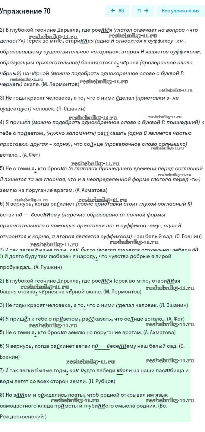 Готовая домашняя работа с ответами по Русскому языку за 9 класс Рыбченкова, Александрова, Загоровская, Нарущевич Учебник УМК Просвещение 2018 ФГОС - Упражнения 70