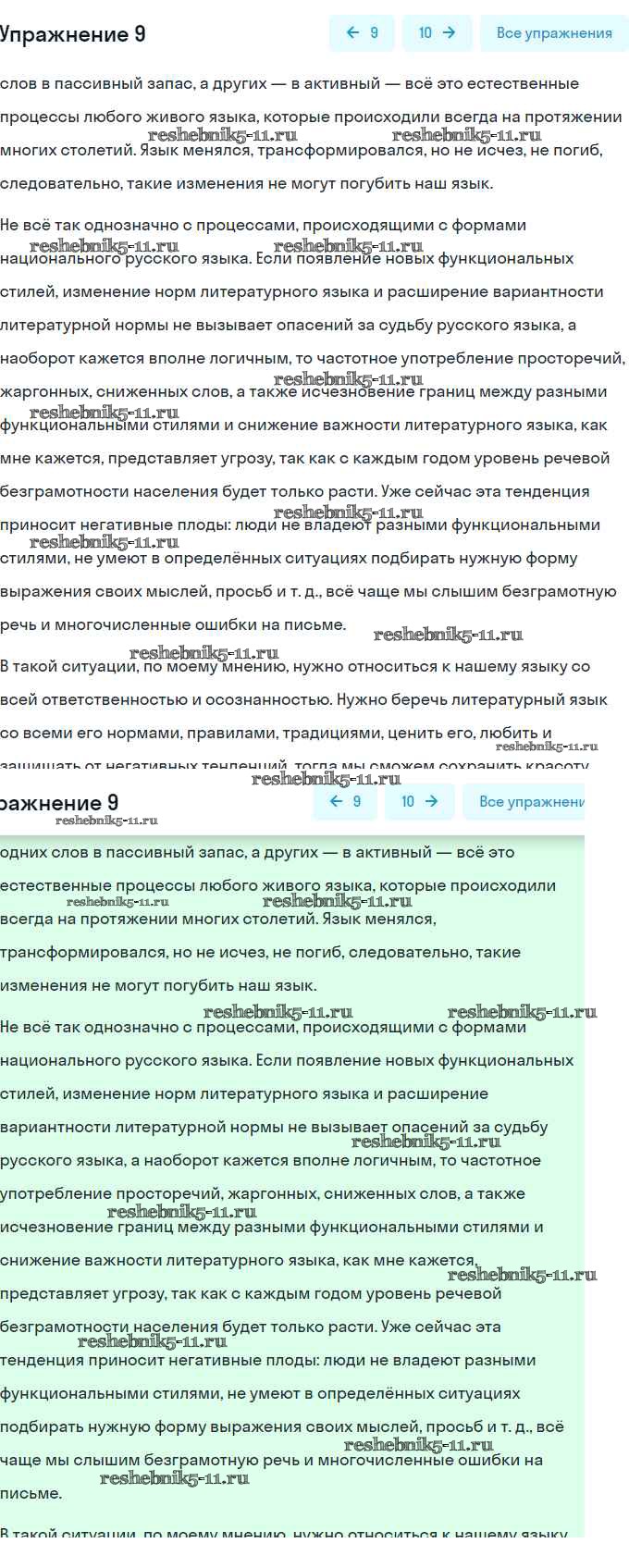 Русский язык за 9 класс Рыбченкова Учебник УМК Просвещение упражнение 9