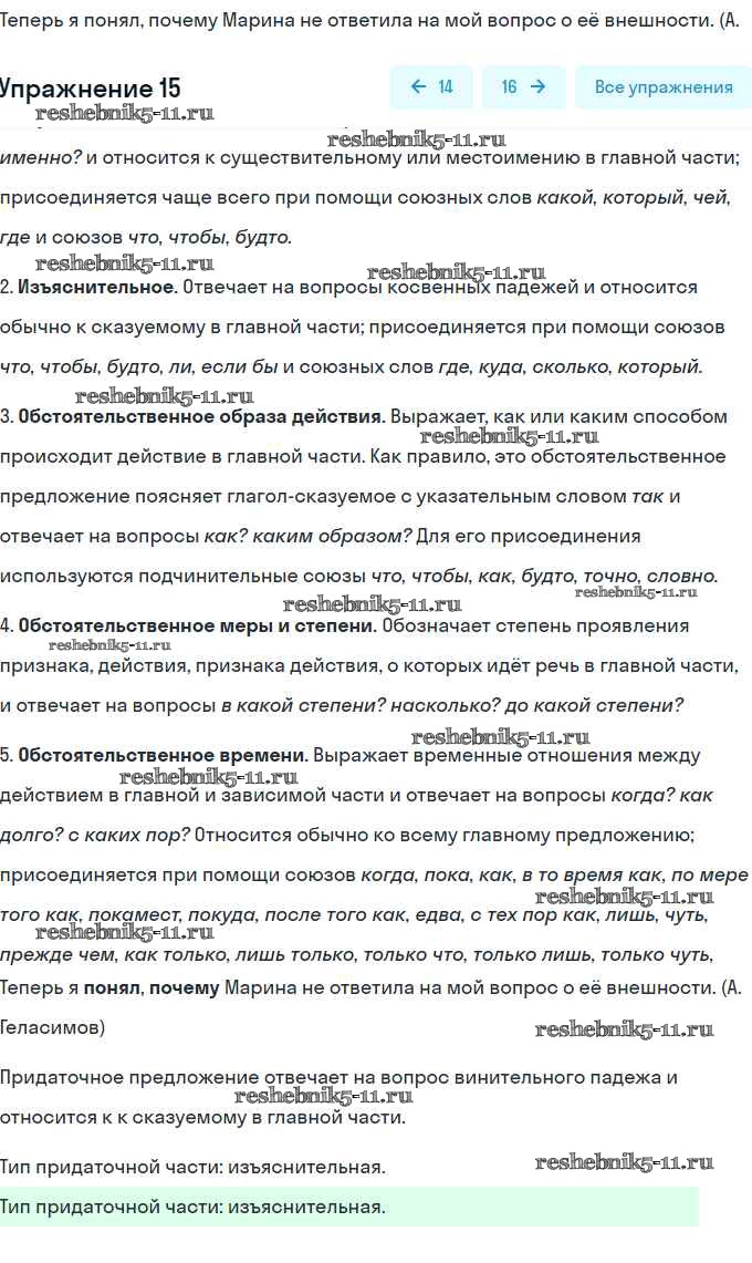 Решебник / контрольная работа / сложноподчинённое предложение / вариант 1 / 15