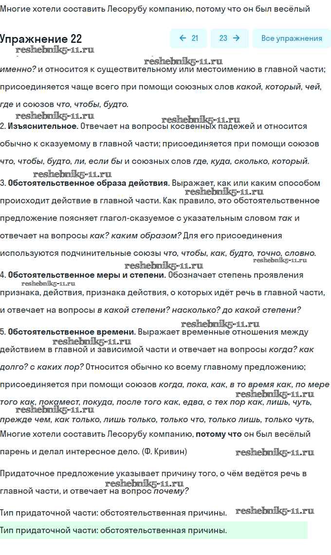 Решебник / контрольная работа / сложноподчинённое предложение / вариант 1 / 22